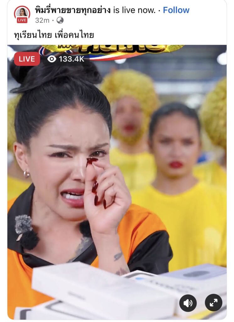 ในบางช่วงของไลฟ์ แม่ค้าออนไลน์ชื่อดัง ก็มีน้ำตาเมื่อพูดถึงการที่ทำไลฟ์เพื่อช่วยเกษตรกรไทย ถึงแม้ว่าอาจจะขาดทุน จากต้นทุนการบริหารแพล็ตฟอร์ม และคัดสรรสินค้าก่อนส่ง รวมทั้งหาสินค้ามาขายได้ลำบาก เพราะบางสวนก็ไม่ขายให้ เนื่องจากเกรงว่าจะทำราคาผันผวน