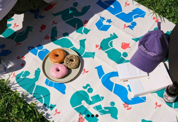 สำหรับผ้าปูปิกนิกนี้ ผลิตจากกระดาษรีไซเคิลจากหนังสือถึง 70% แล้วเสริมด้านหลังด้วยชั้นลามิเนต กันน้ำได้ในระดับหนึ่ง เพื่อให้สามารถใช้งานบนพื้นหญ้าที่มีความชื้น ขณะที่พื้นผิวด้านบนถูกออกแบบมาเพื่อลดการติดของเศษหญ้าและใบไม้ ตัวผ้ามีขนาด 90 x 135 เซนติเมตร เหมาะสำหรับ 1-2 คน น้ำหนักเบา พับเก็บได้ และมีสายยางสำหรับรัดเก็บ