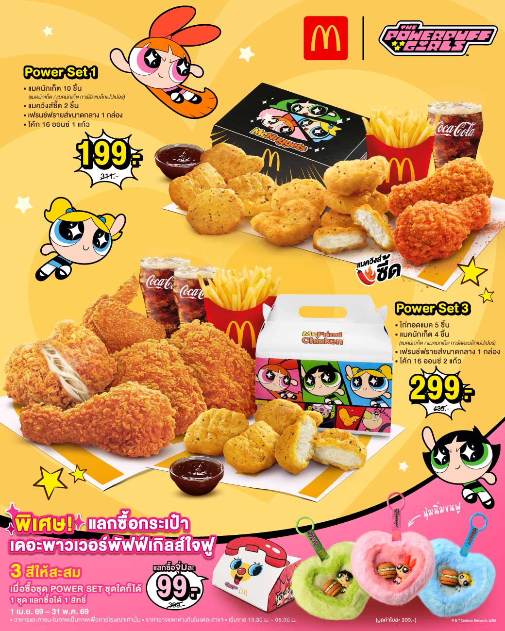 แฟนๆ สามสาว ‘The Powerpuff Girls’ ห้ามพลาด แวะมาอัพพลังเลิฟ พร้อมเมนูความอร่อยสุดคิ้วท์ ได้แล้ว ตั้งแต่วันนี้ – 31 พ.ค. 2569 นี้เท่านั้น ที่ร้านแมคโดนัลด์ ทุกสาขาที่ร่วมรายการ, แมคไดร์ฟ ทรู และแมคดิลิเวอรี โทร.1711, เว็บไซต์ www.mcdonalds.co.th ติดตามรายละเอียดเพิ่มเติมได้ที่ Facebook.com/McThai