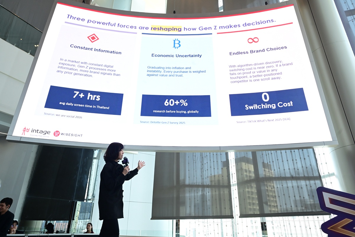 ดร.ดั่งใจถวิล อนันตชัย ประธานกรรมการบริหาร บริษัท อินเทจ (ประเทศไทย) จํากัด กล่าวว่าเพื่อวิเคราะห์มุมมอง ทัศนคติ และปัจจัยที่มีผลต่อการตัดสินใจเลือกแบรนด์ของผู้บริโภค Gen Z ซึ่งถือเป็นกลุ่มกำลังซื้อสำคัญของเศรษฐกิจยุคใหม่ ที่นักการตลาดกำลังให้ความสนใจ ต้องเริ่มจากทำความเข้าใจพฤติกรรมการตัดสินใจเลือกแบรนด์และปัจจัยที่เป็นแรงกดดันคนรุ่นใหม่ในยุคนี้