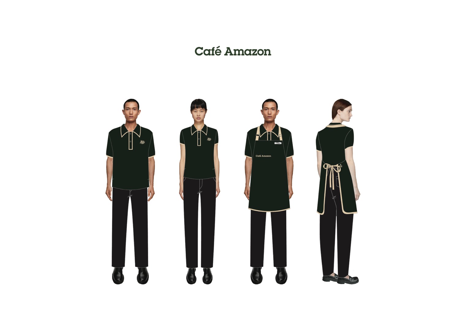 หนึ่งในโปรเจกต์ยักษ์ของปีคือการได้ร่วมออกแบบชุดยูนิฟอร์ม ให้กับ Café Amazon และ Café Amazon Experience แฟล็กชิป สโตร์แห่งใหม่ใจกลางอารีย์ ซึ่งเป็นการสั่งผลิตล็อตใหญ่ที่สุดที่แบรนด์เคยทำมา ภายใต้โจทย์ที่ว่าต้องดู “โมเดิร์น” ให้สอดคล้องกับรีเทลยุคใหม่ แต่ยังคงฟังก์ชันที่ทำงานได้สะดวกจริง โดยล็อตแรกมียอดสั่งผลิตสูงถึง 60,000 ชิ้น