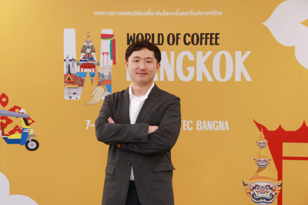 สาเหตุที่เลือกไทยเป็นเจ้าภาพในการจัดงาน World of Coffee ครั้งนี้ Mr.Kangmin Kim บอกว่า เพราะอุตสาหกรรมกาแฟในภูมิภาคเอเชียมีการเติบโตเร็วเป็นอันดับต้นๆ ของโลก และเมื่อโฟกัสมาที่ไทยจะพบว่า มี Coffee Ecosystem ครบวงจรตั้งแต่ต้นน้ำถึงปลายน้ำ อีกทั้งพฤติกรรมการบริโภคกาแฟของคนไทยมีการเติบโตอย่างต่อเนื่อง จึงน่าจะเชื่อมโยงทุกภาคส่วนของกาแฟเข้าไว้ด้วยกันได้เป็นอย่างดี