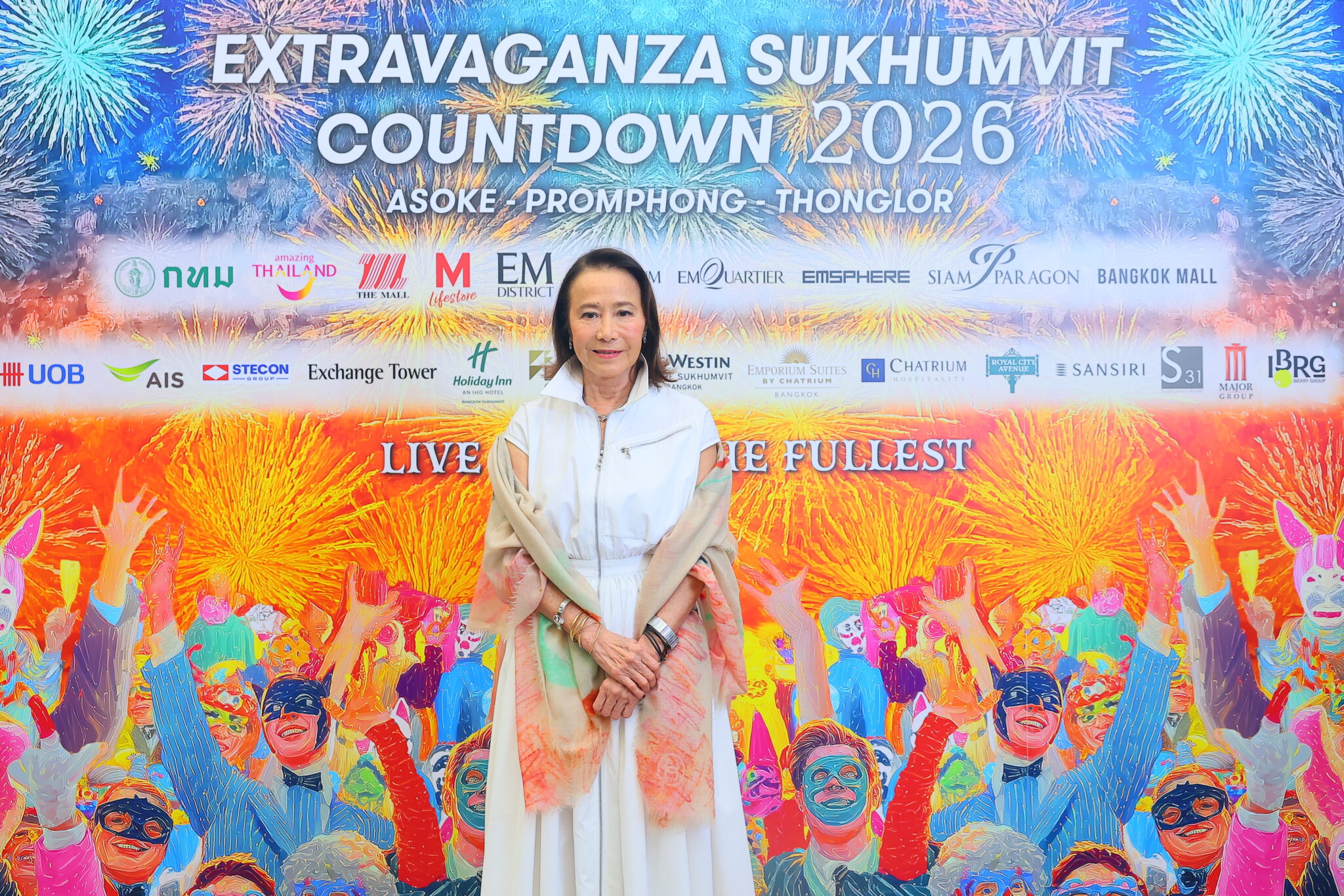 คุณศุภลักษณ์ อัมพุช ประธานกรรมการบริหาร บริษัท เดอะมอลล์ กรุ๊ป จำกัด, สยามพารากอน รีเทล, EM DISTRICT และผู้นำเครือข่ายภาคีภาคเอกชนย่านสุขุมวิท กล่าวว่า “การจัดงาน EXTRAVAGANZA SUKHUMVIT COUNTDOWN 2026 สะท้อนพลังความร่วมมือของภาคเอกชนอย่างเป็นรูปธรรม ในการร่วมขับเคลื่อนเศรษฐกิจ โดยเฉพาะย่านสุขุมวิท ซึ่งถือเป็นหนึ่งในย่านการค้าที่มีศักยภาพสูงของกรุงเทพฯ เป็นย่านที่มีนักท่องเที่ยวหนาแน่นแห่งหนึ่งของกรุงเทพฯ เป็นที่ตั้งของศูนย์การค้า โรงแรมระดับโลก ร้านอาหาร และเอ็นเตอร์เทนเมนท์ชั้นนำ รองรับนักท่องเที่ยวคุณภาพทั้งระยะสั้นและระยะยาว