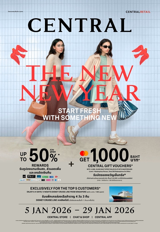 ห้างสรรพสินค้าเซ็นทรัล ในเครือเซ็นทรัล รีเทล จับมือ ลูกค้าคนสำคัญทั่วประเทศ เดินหน้าก้าวสู่ช่วงเวลาแห่งความสุขต้อนรับปีใหม่ปีม้า 2569 ส่งมอบประสบการณ์เหนือระดับอย่างต่อเนื่อง ทั้งช้อปปิ้ง การบริการ และอีเวนต์ใหญ่ตลอดทั้งปี สานต่อวิสัยทัศน์ห้างแห่งแรงบันดาลใจ จุดหมายปลายทางแห่งการช้อปปิ้งที่เป็นศูนย์กลางไลฟ์สไตล์ที่นักช้อปทั้งไทยและต่างชาติไว้วางใจ ประเดิมเปิดแคมเปญแรกของปีอย่างยิ่งใหญ่กับแคมเปญ “CENTRAL THE NEW NEW YEAR” – START FRESH WITH SOMETHING NEW