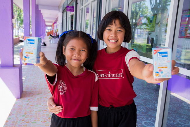 ด.ญ. อัจฉรา แสงขาว อายุ 11 ปี บอกว่า “ปกติแม่จะต้มและชงนมให้ดื่มที่บ้าน วันนี้ได้ดื่มนมแลคตาซอยอร่อยมากเลยคะ เป็นนมถั่วเหลืองมีประโยชน์ช่วยให้ร่างกายแข็งแรง ขอบคุณพี่ๆ ที่นำนมมาให้พวกหนูกับเพื่อนๆ หนูมีความสุขมากค่ะ”