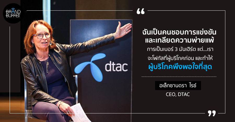 ดีแทคขึ้นชื่อว่าเป็นแบรนด์ที่พูดถึงเรื่อง “ลูกค้าเป็นศูนย์กลาง” (Customer Centric) มาโดยตลอด แต่ อเลกซานดร้า มองว่า อาจจะยังไม่ต่อเนื่องนัก นับจากนี้ก็จะต้องเปลี่ยนวิธีการทำงาน และโฟกัสที่ลูกค้ามากกว่าที่เคย